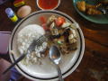 おやつタイム。遊んだ後だからお腹が空いている。まずは帰りがけにヨーグルトホーム。シャワーを浴びて宿のレストランにツナご飯と野菜のオイスター炒めを頼む。