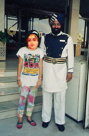 タージマハールホテルの前でシーク教徒のドアマン。体格が良い。