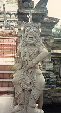バリのお寺の前で。日本で言うとこま犬?