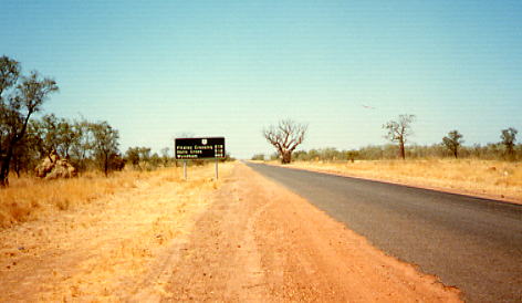 HOME>Australia>ヒッチハイク>219キロ 次の町Fitzroy Crossingまで219Km、手前の町も200Km。ここで一泊した。乗せてくれた車は舗装されてない脇道に消えていった。水筒に水は1リットルしかない。貴重な水だから少しずつ飲んだ。水のありがたさを痛感した。 BACK TOP NEXT e-mail: はのまん@沈没旅行者