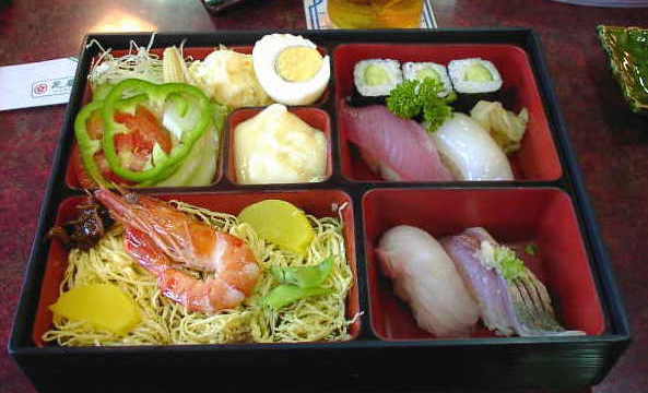HOME>Thailand>タイのご飯>花屋の寿司弁当 番外編 2/2 花屋の寿司弁当 創業40数年バンコクの日本食の老舗「花屋」。 バンコクで必ず行く店の一つ。ポテトサラダや自家製マヨネーズ。炊き込みご飯にお寿司が付いてる。130バーツいつも食べるのは日替わり定食かこれ。この日は日曜日で定食がなかった。 BACK TOP NEXT e-mail: はのまん@沈没旅行者