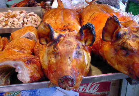 HOME>Thailand>タイのご飯>子豚の丸焼き バンコク編 22/27 子豚の丸焼き ウイークエンドマーケットにて 表面がつやつやしてておいしそう。 でも1人でこれだけは食べられない。 BACK TOP NEXT e-mail: はのまん@沈没旅行者