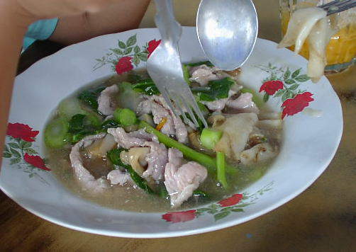 HOME>Thailand>タイのご飯>クイティャオラッナー バンコク編 2/27 クイティャオラッナー、あんかけの麺。 幅広の麺にオイスターソースをベースにしたあんをかけて食べる。 あんの中に具のだしが出ておいしい。 これも妻と子供が大好き。 BACK TOP NEXT e-mail: はのまん@沈没旅行者