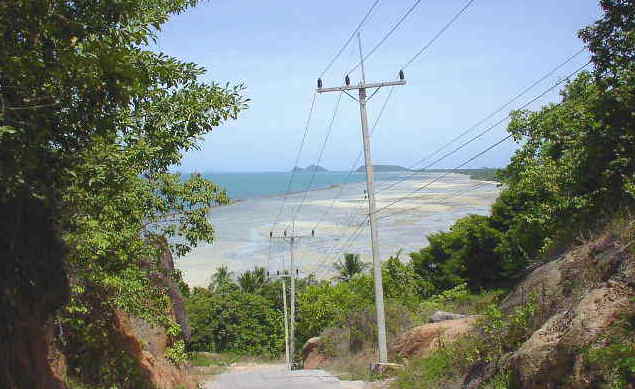 HOME>旅のフォトアルバム>パンガンフォトマップ>坂の上からの眺め ハドリンからバンカイまでの坂道 急な坂がいくつも続く。 道路ができたのもほんの数年前。 それまでは船が交通手段だった。 BACK TOP NEXT e-mail: はのまん@沈没旅行者