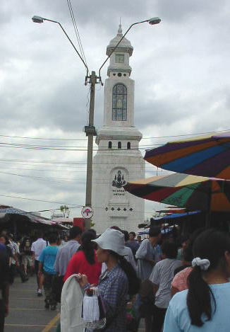 HOME>Thailand>ウイークエンドマーケット>時計台 No,1/12 マーケットの中はとにかく広い。何でこんなに!と思うくらい。全部見たいのだけどその前にいつも疲れてしまう。そんな市場の中で唯一目印となる所、時計台。どこにいるか迷ったときはこれを探せ! BACK TOP NEXT e-mail: はのまん@沈没旅行者