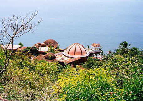 HOME>India>ゴアフォトアルバム>No,12/12 インドの財閥TATAの別荘。 インドの金持ちは半端ではない。この斜面に幾つもこのような建物がある。船着き場、ヘリポート、まである。まるで007,ジェームスボンドの映画にでも出てくるような所。 BACK TOP NEXT e-mail はのまん@沈没旅行者