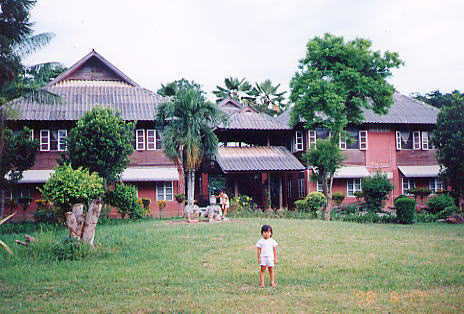 HOME>Thailand>タイ、最北の町へ>メコックビラ2 No,2/14 正面の裏にまた建物がある。 タイの古い建築様式で建てられた建物。 中庭もとても広く子供達が走り回るのにちょうど良い。 BACK TOP NEXT e-mail はのまん@沈没旅行者