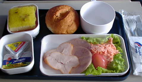 HOME>Thailand>南の島へ>バンコクエアー機内食 バンコクエアーの機内食 人参のサラダ、ハム、そしてパン。 これが意外とおいしい。子供も全部食べてしまった。 BACK TOP NEXT e-mail はのまん@沈没旅行者