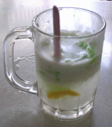 HOME>Thailand>タイのご飯>ココナッツミルクのデザート バンコク編 23/27 ココナッツミルクのデザート。 台北ホテルのそばの店。いつもお昼を食べた後のデザート。 緑色の寒天のようなこんにゃくのような物がのどをするすると通っていく。 ほんのり甘いココナッツミルクが後味爽やか。 BACK TOP NEXT e-mail: はのまん@沈没旅行者
