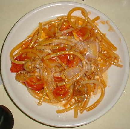 HOME>Thailand>タイのご飯>マカロニ炒め バンコク編 1/27 パッマカロニー、マカロニ炒め。 バンコク、スリクルンホテルのレストランにて ゆでたマカロニをトマトと玉ねぎで炒めてだけ。仕上げにミルクをかけてある。タイの甘いトマトケチャップの味がなんとなくなつかしい味。妻と子供が大好き、必ず食べる。 BACK TOP NEXT e-mail: はのまん@沈没旅行者