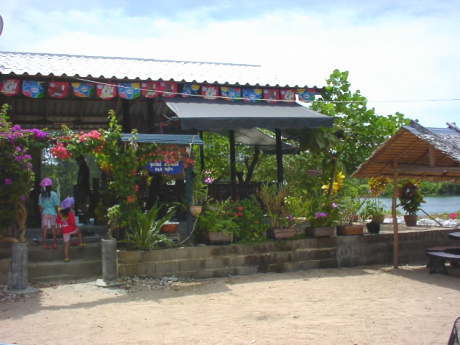 道路沿いの店、すぐ裏に湖がある。